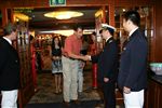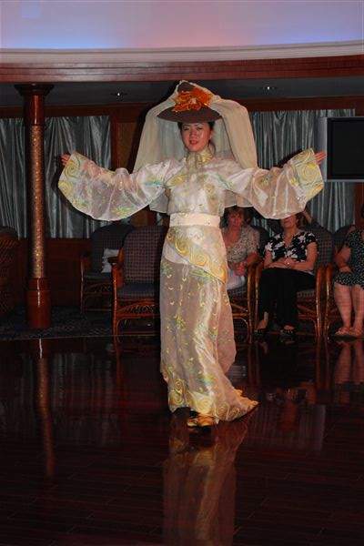 我们登船后,一支乐队聚集在一起欢迎其他乘客的到来。在航行的每一站,工作人员都会列队欢迎我们回来。下午4点,船“启航”,尽管这艘五层楼高的船并没有挂帆。下午5点30分,我们参加了一次情况介绍会。安全部分非常简短。游轮导游说这艘船从未发生过事故,也不可能沉没(我敢肯定他们对泰坦尼克号也这么说)。不过,万一发生意外,我们被告知只要按照广播里的指示去做就行了。晚上6点45分,船长举行了欢迎招待会,我们错过了。晚上7点30分,晚餐开始供应。