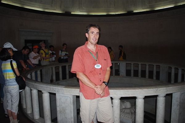 第二天我们参观了南京,这是一座中国主要城市,也是中国的临时首都。我们于下午 12:30 抵达南京,然后乘坐旅游巴士前往中山陵。简而言之,孙中山先生在 1912 年推翻清朝、建立中华民国的过程中发挥了重要作用。1925 年他去世后,政府内部出现了不同的派系,最终毛泽东和共产党在 1949 年赢得了内战。今天,孙中山先生的遗体安放在南京森林地区一座大山顶上。到达他的陵墓需要爬很多级台阶,但这也是乐趣的一部分。遗体上方的天花板上有中华民国国旗的徽章,这个徽章现在仍然在台湾国旗上使用。这是我五次去中国旅行中唯一一次看到这个徽章。如果我没记错的话,台湾至今仍自称“中华民国”,并视孙中山先生为其主要创始人。我曾向一位台湾朋友确认过这一点,但她并不确定。