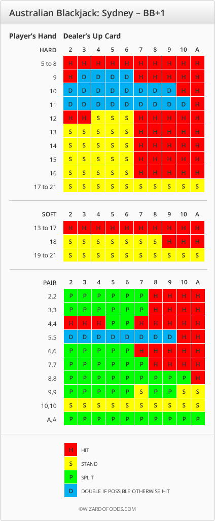 以下是 BB+1 规则的基本策略,以及庄家在软 17 点停牌的情况。
