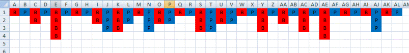 换句话说,考虑大路中最新的条目。然后,向左移动两个单元格。然后,向上移动。如果向上移动没有导致变化,则标记为红色;如果导致变化,则标记为蓝色。