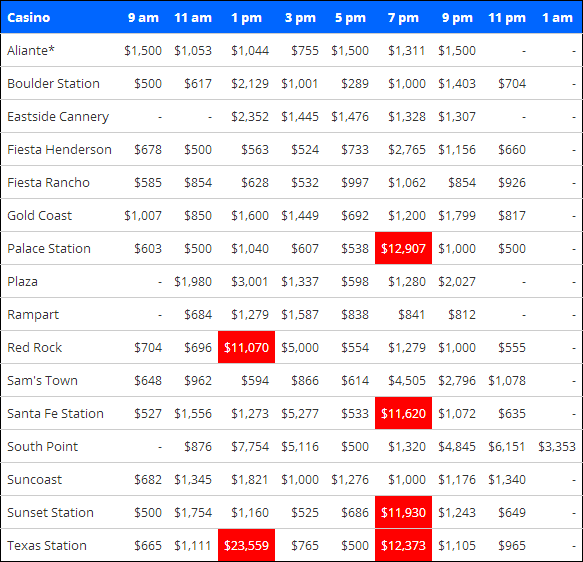 查看拉斯维加斯12家宾果游戏厅的现金球累积奖金,以及其他累积奖金附加游戏。每两小时更新一次。