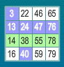 - 游戏使用 4 张 4 的宾果卡进行,每张卡上有 1 到 80 之间的 16 个随机数字。