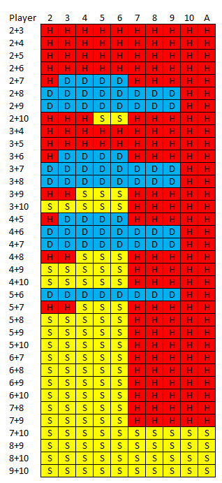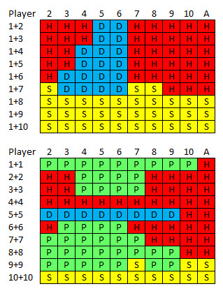 玩家 卡 1 | 玩家 卡 2 | 经销商 明牌 | 站立 | 打 | 双倍的 | 分裂 |