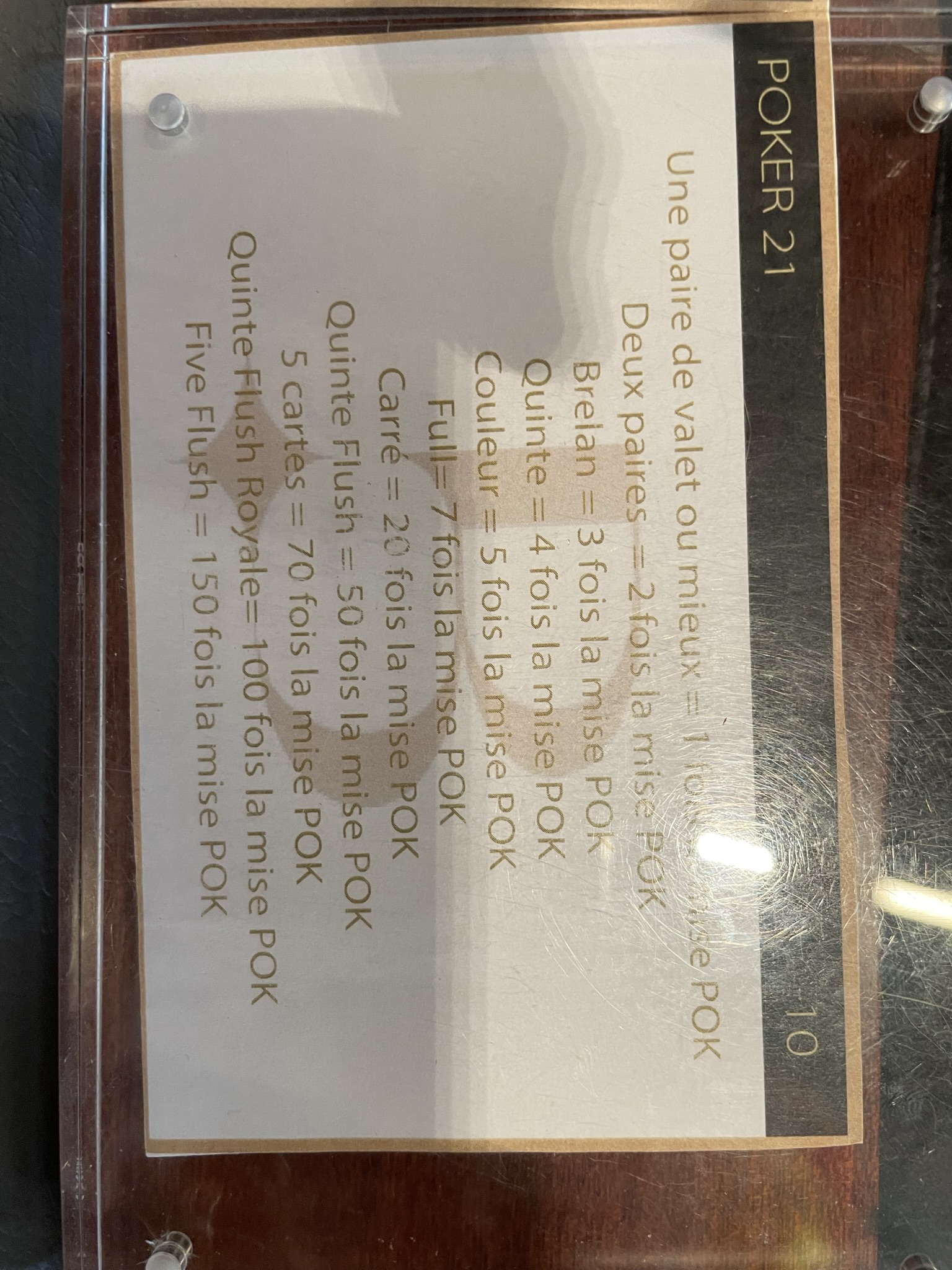 21点扑克是我在2022年9月17日在巴黎Le Club Barriere注意到的一种二十一点附加赌注。没错,巴黎确实有一些小型的纯赌桌赌场。我去的那家俱乐部地址是香榭丽舍大街104号。