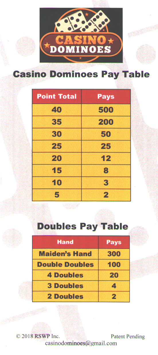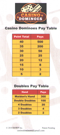 - 赌场多米诺骨牌赌注的赔付是根据公共牌和三张单独的玩家牌之间形成的点数来计算的。