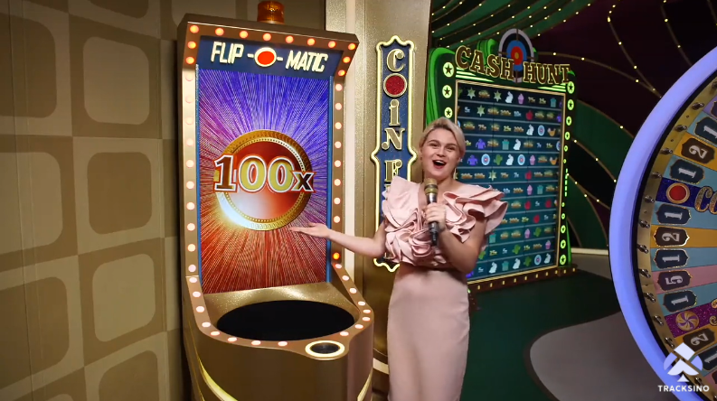 - 如果转盘停在“抛硬币”、“弹珠机”、“现金寻宝”或“疯狂时间”上,则进行相应游戏。任何投注于该部分的游戏均可参与游戏,并根据游戏结果和赢得的“最高老虎机”倍数进行赔付。