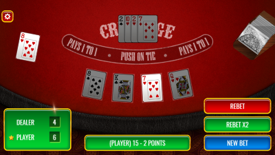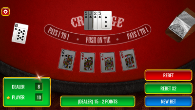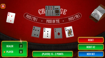 我还没有分析过这款游戏,但帮助文件声称回报率高达 97.2%。很容易计算出,庄家拿到 J 作为 Crib Card 额外获得两点的概率是 4/52。简单计算一下,当 Crib Card 是 J 时,玩家预计会输掉 36.4% 的赌注。如果我们忽略平局,那么庄家赢取 J 作为 Crib Card 的概率是 31.8%。