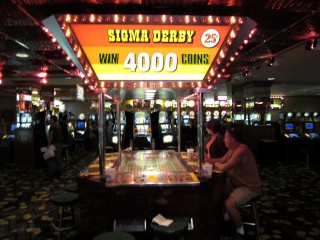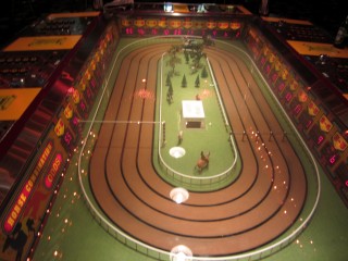 德比是一款电子赛马游戏。1到10名玩家围坐在赛道旁,观看5匹赛马一场接一场地角逐。只需25美分的赌注,每场比赛间隔大约90秒,这绝对是一款不错的消磨时间的游戏——如果你能找到的话。市面上的游戏数量正在迅速减少。这款游戏彻底消失只是时间问题。