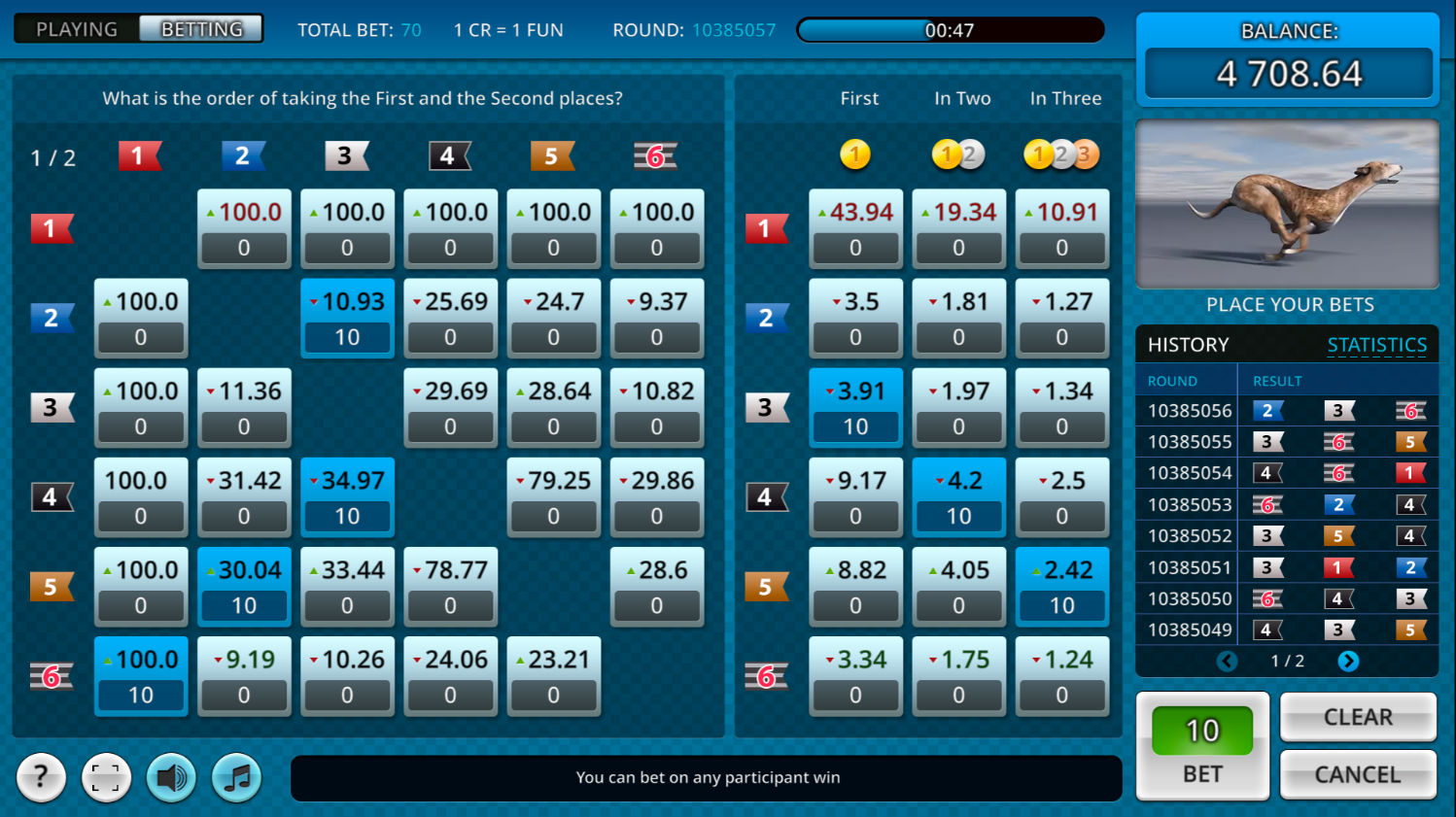 Dogs 3D 是 InBet Gaming 推出的一款模拟赛狗游戏。游戏玩法很简单——六只狗参加赛狗比赛。玩家可以选择独赢、位置、表演和双倍投注。以下是这些投注的含义: