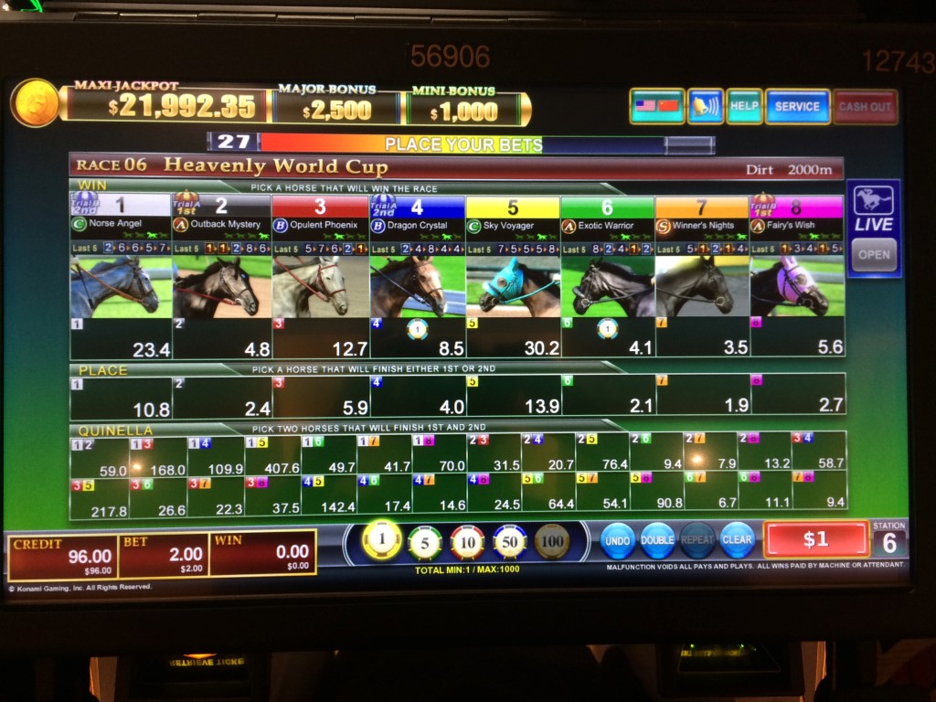 这款游戏还有三个累积奖金。据我了解,有时投注结束后会随机抽取一匹马。如果这匹马赢得比赛,玩家将赢得其中一个累积奖金。我不知道这匹马的中奖频率、平均中奖金额,以及它对游戏回报的贡献有多大。我不确定是否必须对这匹马进行投注,或者累积奖金是否以及如何在玩家之间分配。