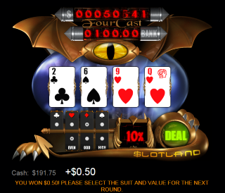 - 如果玩家下注 20 美元并且所有四个预测都正确并且所有四种花色都出现,那么玩家将赢得累积奖金。