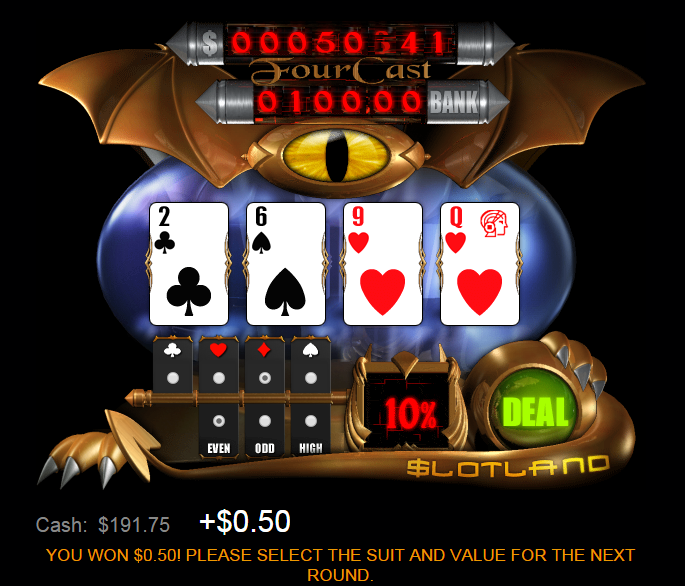 Four Cast 是我见过的最奇特的赌场游戏之一。通常我不会写关于这种稀奇古怪的游戏的文章,但 Four Cast 几乎从互联网赌博兴起之初就在 Slotland 和 Win a Day 等互联网赌场上流行起来。