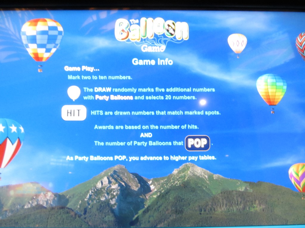 气球游戏是一款基于基诺的游戏,可以在U1 Gaming生产的多游戏机上找到。我在拉斯维加斯俱乐部、Rampart和Dotty's赌场都见过这种机器。气球游戏与穴居人基诺类似,只是它用的是五个气球而不是三个鸡蛋。