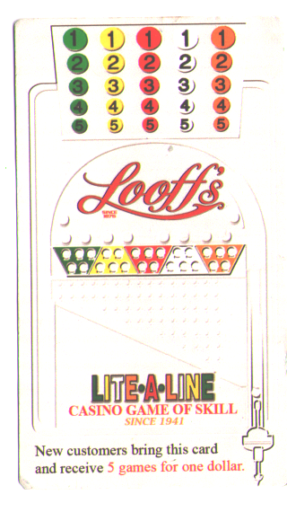 Lite-a-Line 是弹球和宾果游戏的结合。它类似于弹球游戏,因为你用柱塞将球射到棋盘上;但它也像宾果游戏,因为你希望球连续突出五个点,这样你就能赢。当球穿过棋盘上的 25 个孔时,五乘五的记分卡上相应的格子就会亮起。玩家通常下注 1 美元,赢家将获得 15 美元。