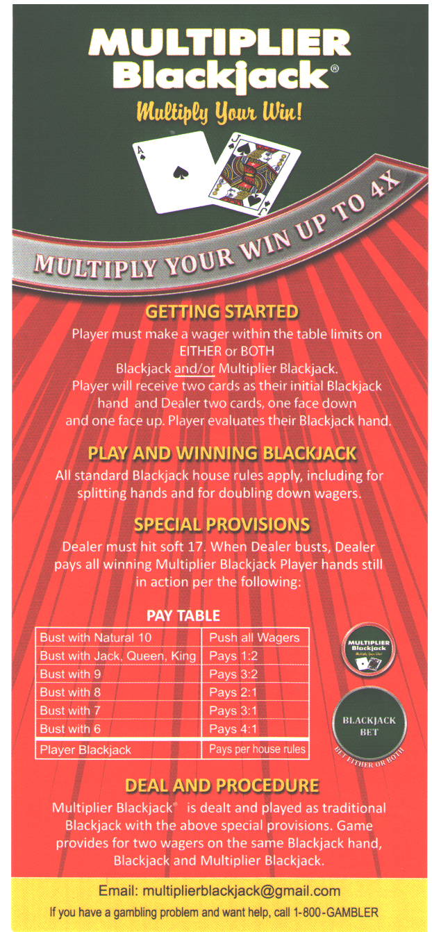 - 如果玩家赢得黑杰克,黑杰克和乘数黑杰克赌注都将根据公布的赌桌规则支付。