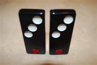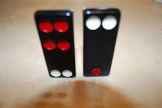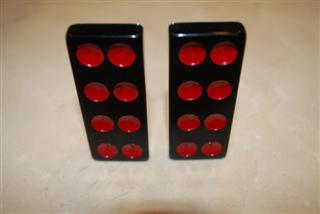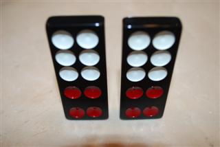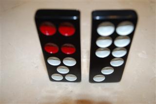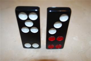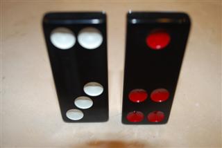 与传统中国骰子相同的配色方案,每张带有1点或4点的半骨牌,其点数均为红色(例如,4-5骨牌有四个红点和五个白点)。唯一的例外是一对6-6骨牌。6-6骨牌上的一半点数为红色,以突出其为最高等级的平民牌。在牌九中,点数颜色在游戏过程中没有任何作用;它只是为了在视觉上使牌更具传统风格。