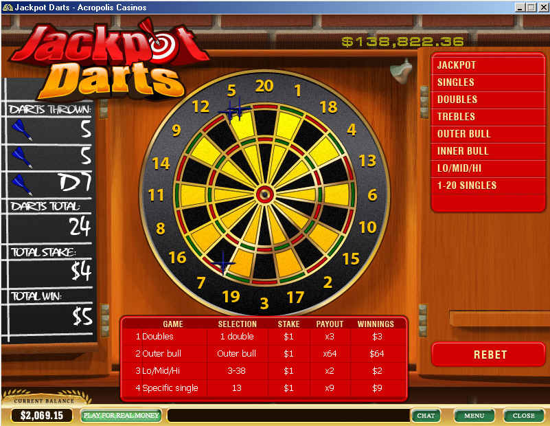 Jackpot Darts 是一款使用Playtech软件的在线赌场游戏。您可以在“街机游戏”菜单下找到该游戏。