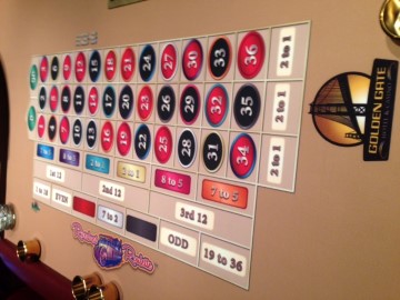 我第一次注意到河船轮盘是在2014年7月7日,地点是拉斯维加斯的金门赌场。它使用标准轮盘,但每个数字被分配了两种颜色。每个数字的第二种颜色上会添加各种新的投注。