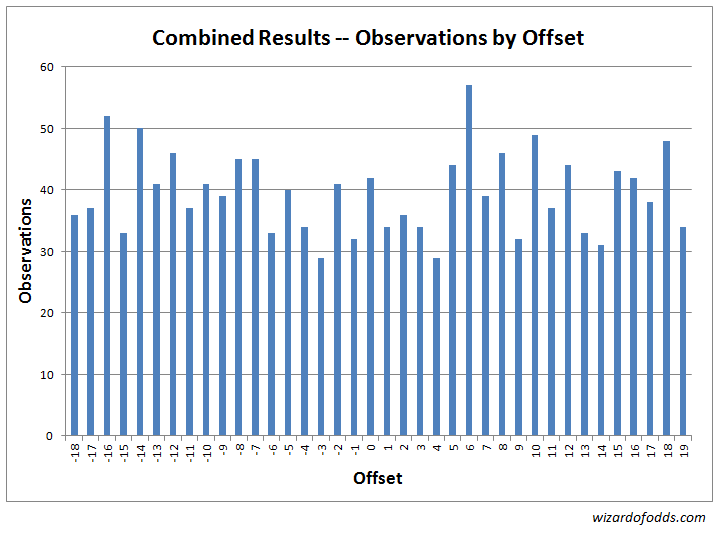 表2显示了在第一次实验中,以中心数字投注为中心的各种弧长进行高斯检验的结果。对于我们涵盖的五个数字的弧长,公平轮盘的预期中奖次数为39.3次。我们实际中奖次数只有29次。在公平游戏中,出现如此糟糕或更差结果的概率为3.84%。