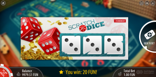 刮刮乐是 SOFTSWISS 软件提供的一款简单易玩的游戏。游戏只有一个投注选项,根据三个骰子的掷出结果进行赔付。结果的显示方式与刮刮卡类似。