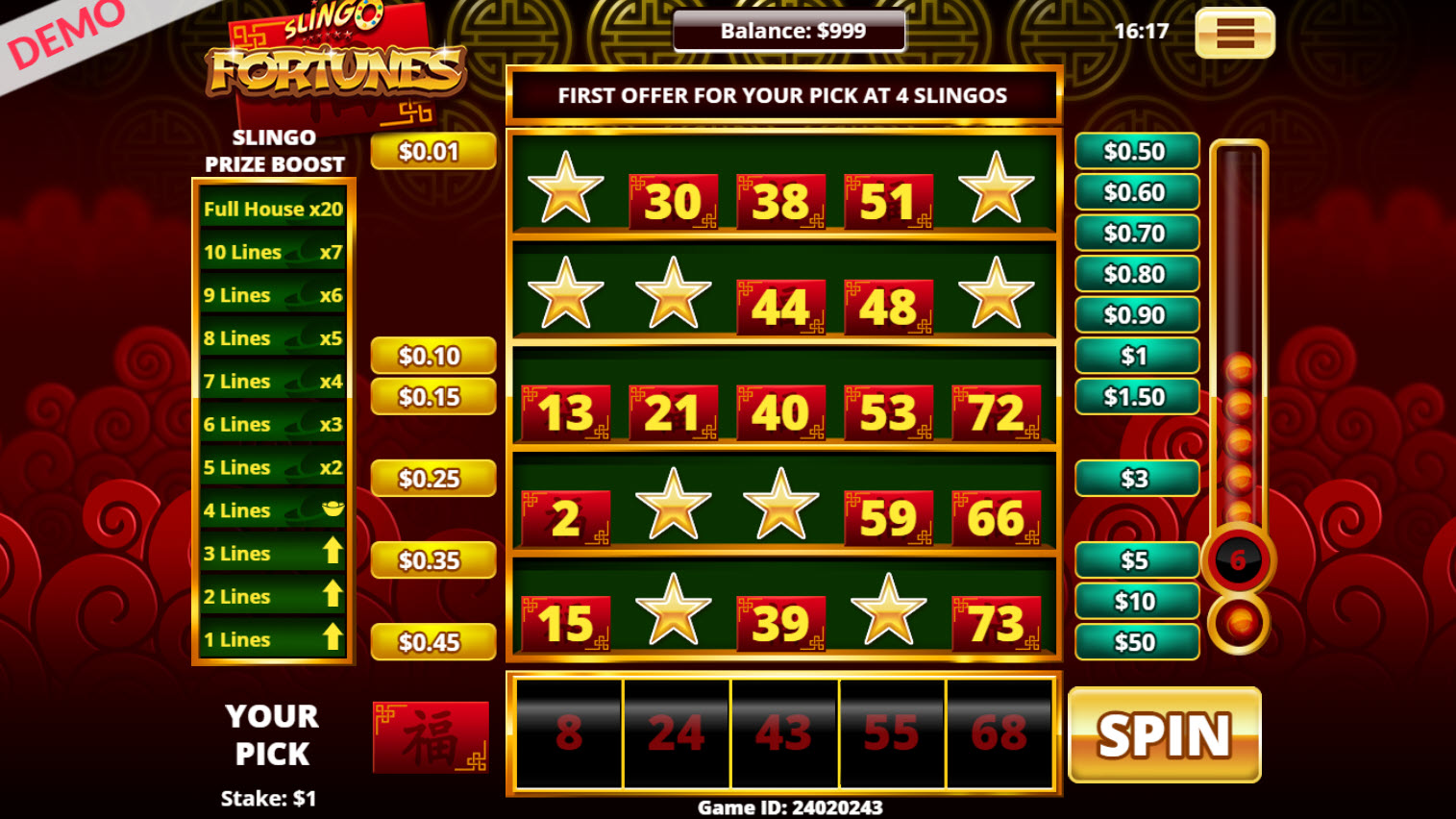 Slingo Fortunes 似乎是完全相同的游戏,但具有亚洲主题。