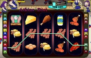 2008年,我在澳大利亚悉尼的一个老虎机会议上做了一个演讲,设计了阿特金斯饮食法老虎机。当时,我用它来演示视频老虎机(有时也被称为pokies)的设计。我会先介绍一下它的赔率表和转轴条,然后再展示各种赢钱方式的概率和回报率。