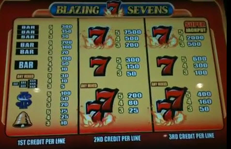 赔付表很容易从规则屏幕和游戏玻璃上看到。大多数视频老虎机只是将所有奖金乘以每线投注的硬币数量。而“炽烈七”则有所不同。第一个硬币可用于赢得美元、铃铛和所有酒吧符号。第二个硬币可用于赢得所有类型的“七”。第三个硬币可使普通七和混合七的奖金翻倍,而“炽烈七”的奖金则翻倍以上。以下三个表格分别显示了每线投注1、2和3个硬币的赔付表。所有奖金必须左对齐。
