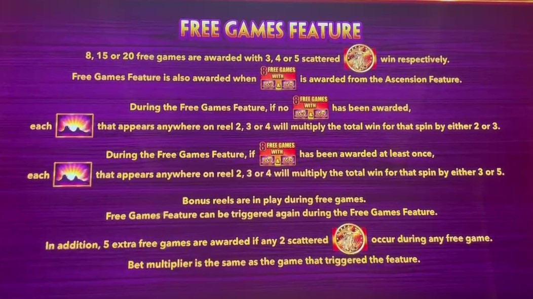 - 在免费旋转中,日出符号除了作为百搭符号外,还应附带2倍或3倍乘数,用于该旋转的所有奖金。但如果玩家使用3至5枚金币再次触发奖励,则所有剩余旋转的百搭乘数将为3倍或5倍。