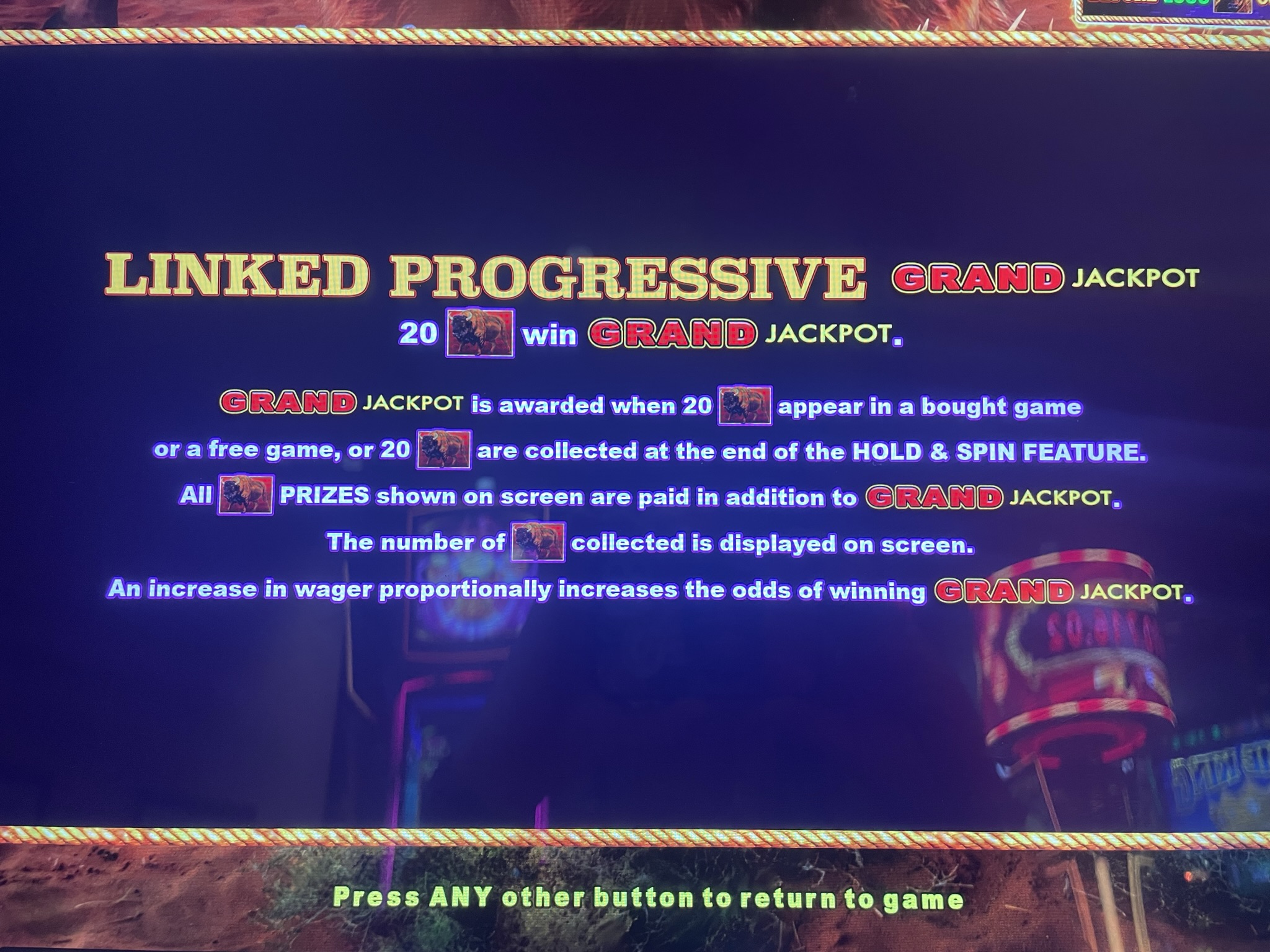 - 玩家在“Hold & Spin”功能中获得水牛身上的“大奖”符号(见下文)。
