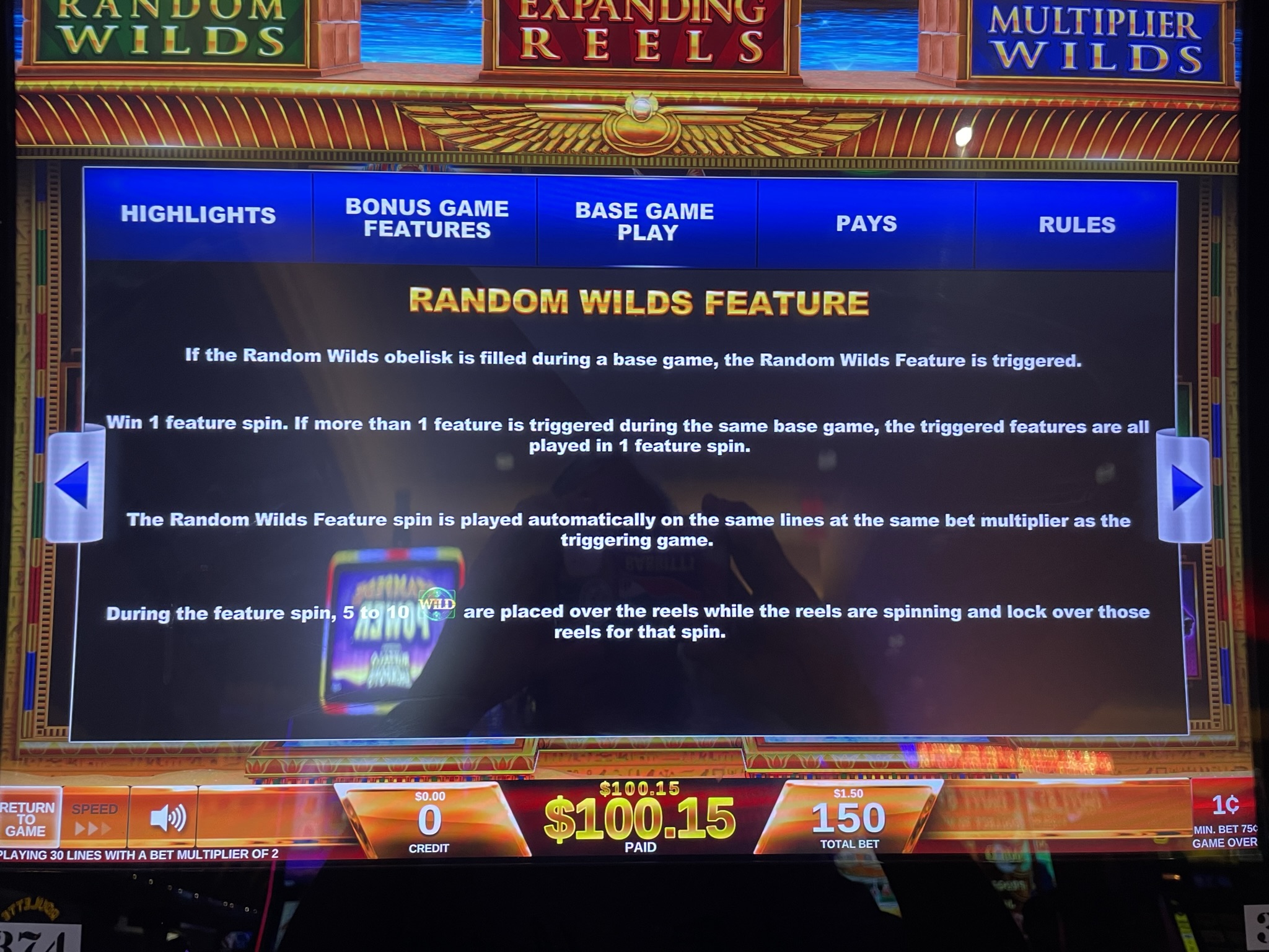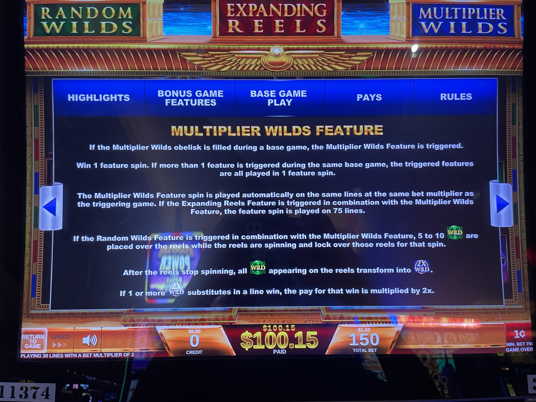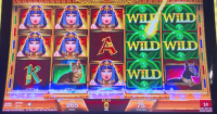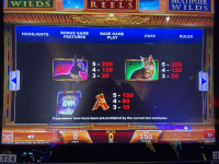 玩家获得蓝色方尖碑的全部三块碎片后,即可获得一次“倍增百搭”功能旋转。在该功能旋转中,所有百搭牌都会变成双倍百搭牌。任何涉及百搭牌的奖金(很可能是大多数百搭牌)都将翻倍。请记住,获得两个或更多双倍百搭牌仍然只会翻倍奖金。