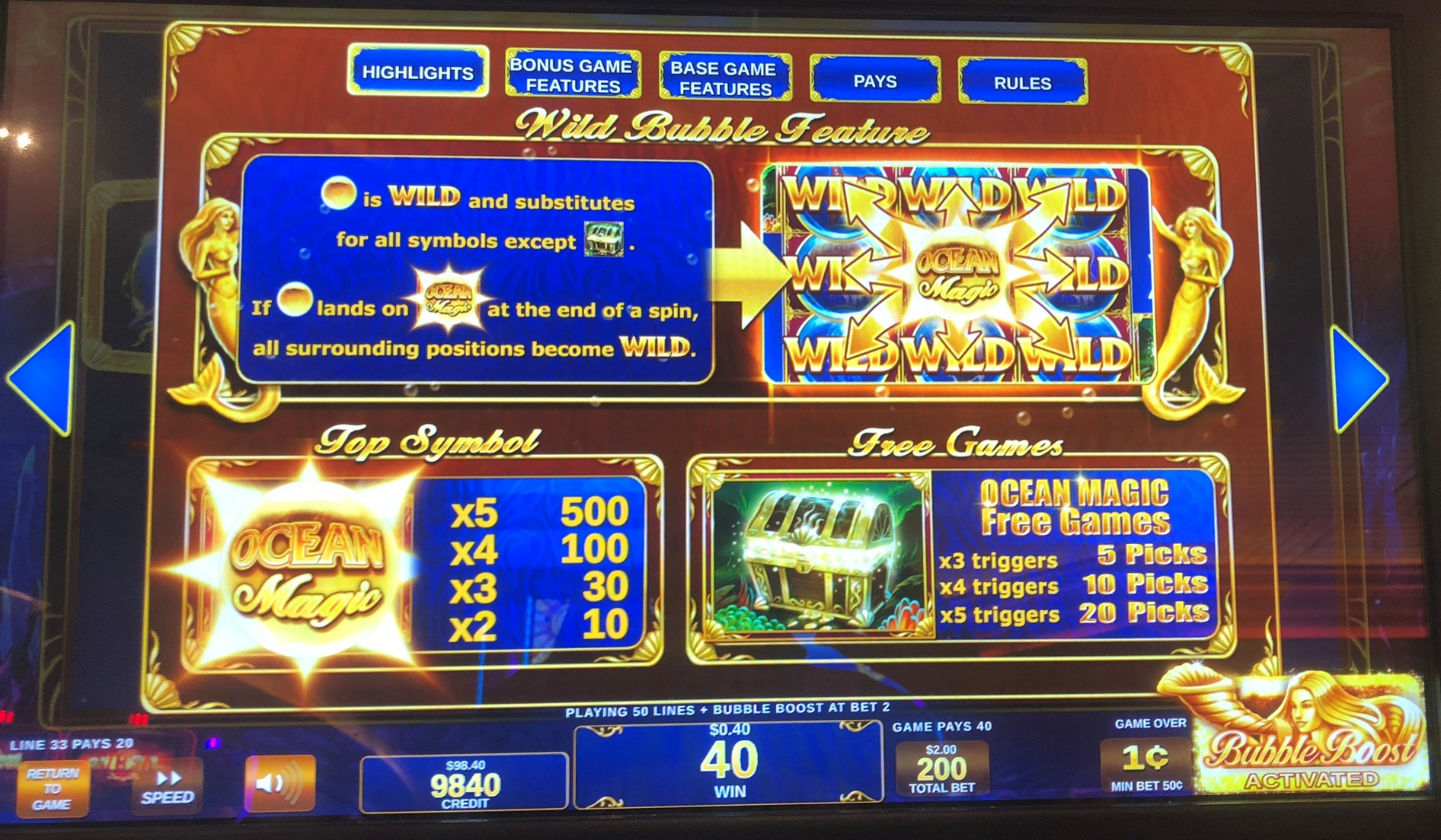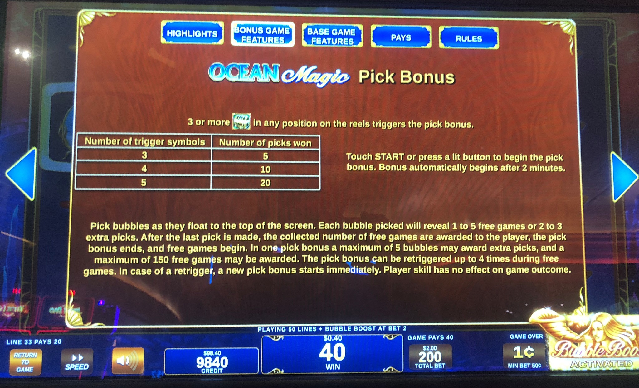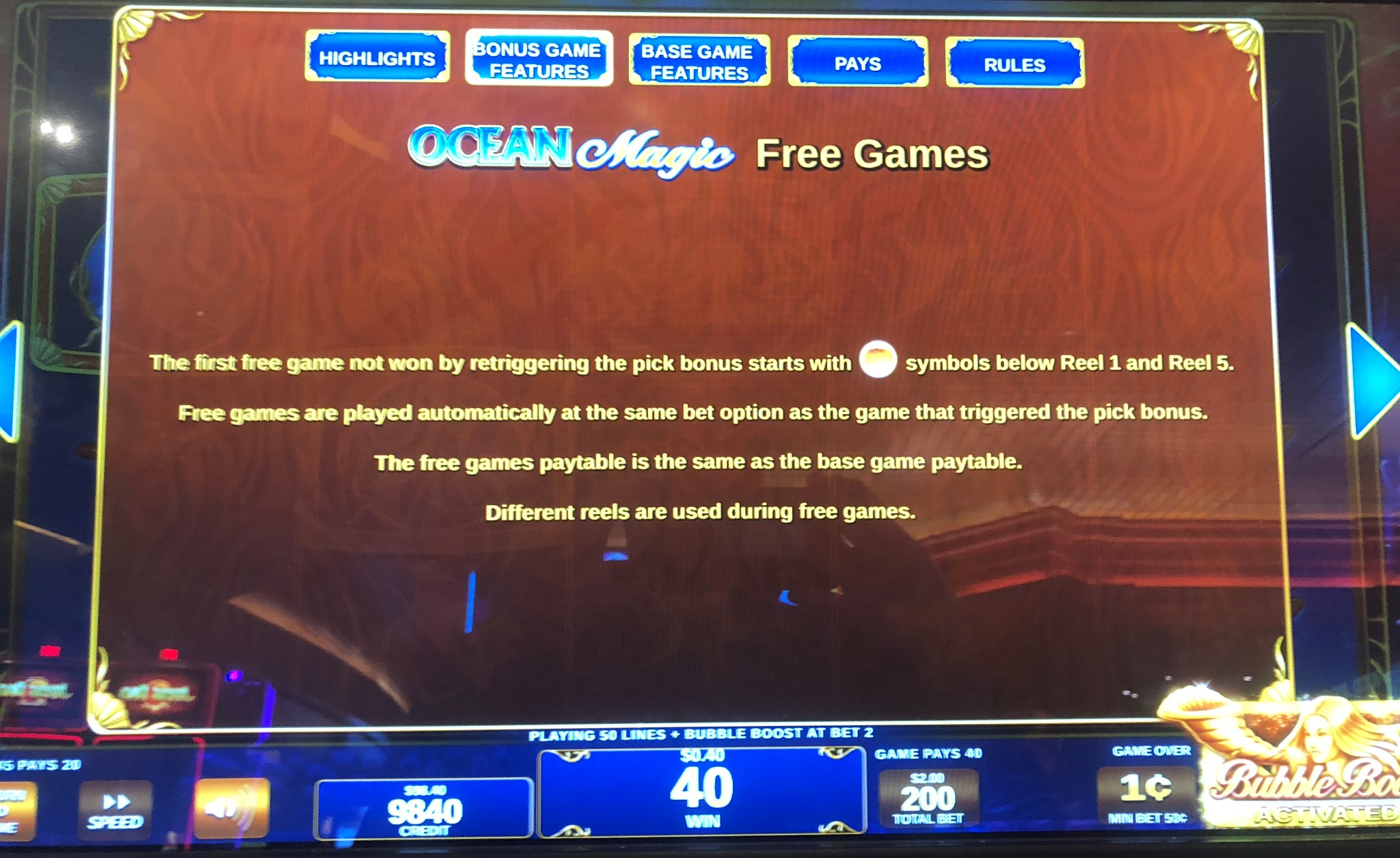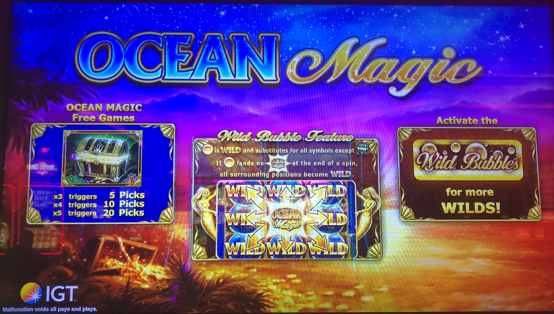 海洋魔法 (Ocean Magic) 是一款由 IGT 出品的“可变状态”老虎机,有人称之为“可变状态”。它的特点是百搭泡泡会在每次游戏后向上移动一行。如果仅在前一位玩家放弃处于有利位置的泡泡时才进行游戏,则可以为玩家带来优势。