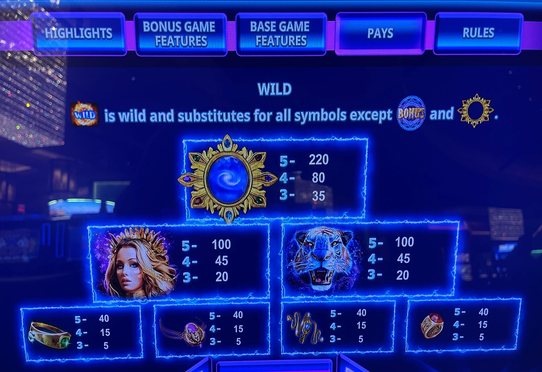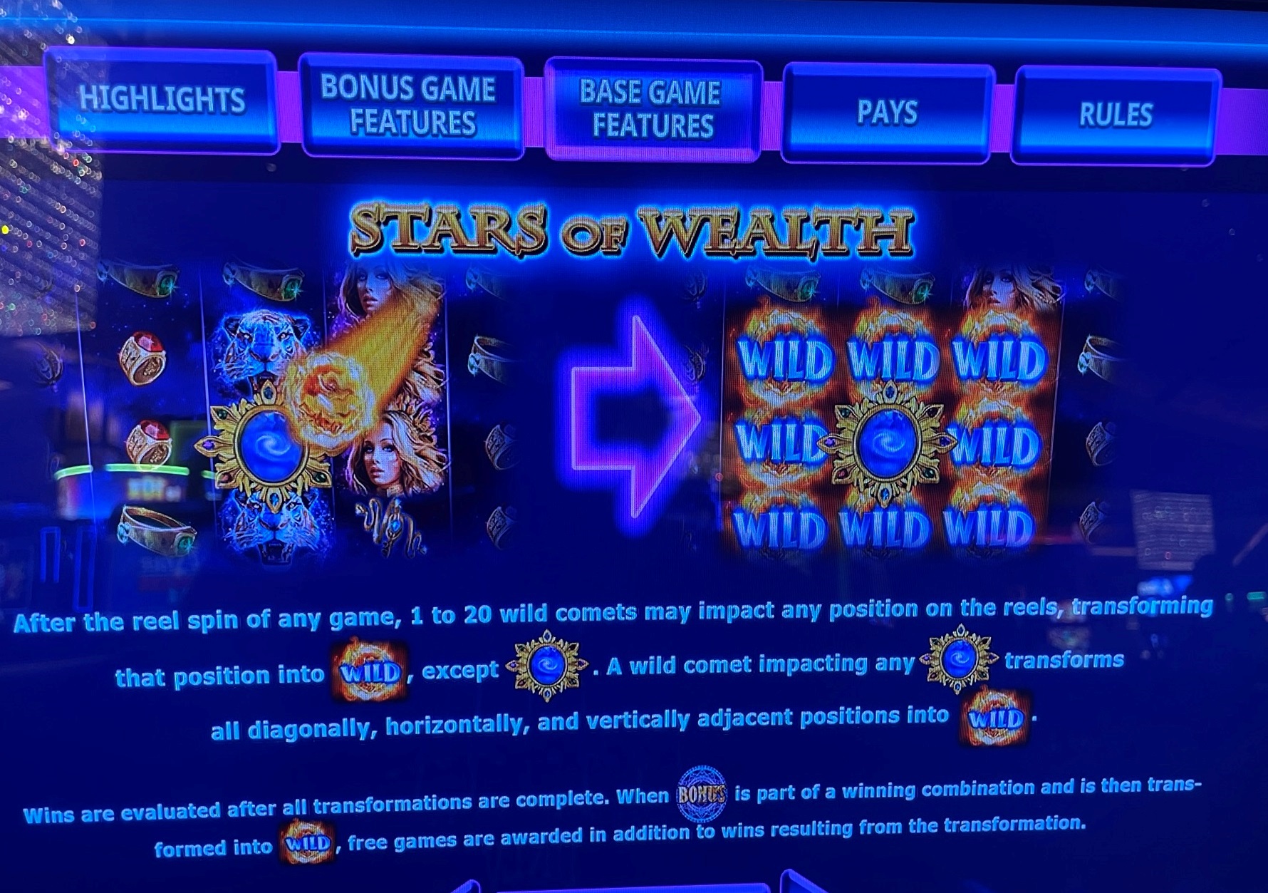与许多老虎机一样,星辰女神是一款 5 轴 4 行老虎机游戏,并设有奖励游戏功能,玩家只需获得 3 个或以上分散符号即可获得奖励。以下是该游戏的一些特色: