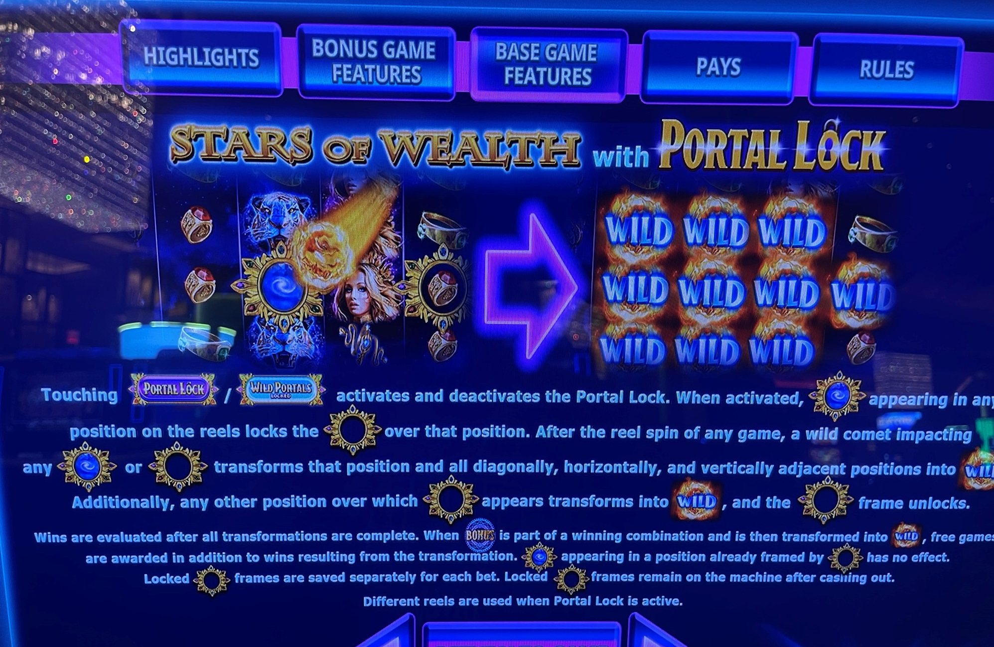 如上文规则部分所述,在狂野传送门模式下,一个帧会保留在屏幕上,直到下一个符合条件的流星撞击。屏幕上的帧数越多,尤其是在前三个转轴中,下一局游戏的价值就越高。