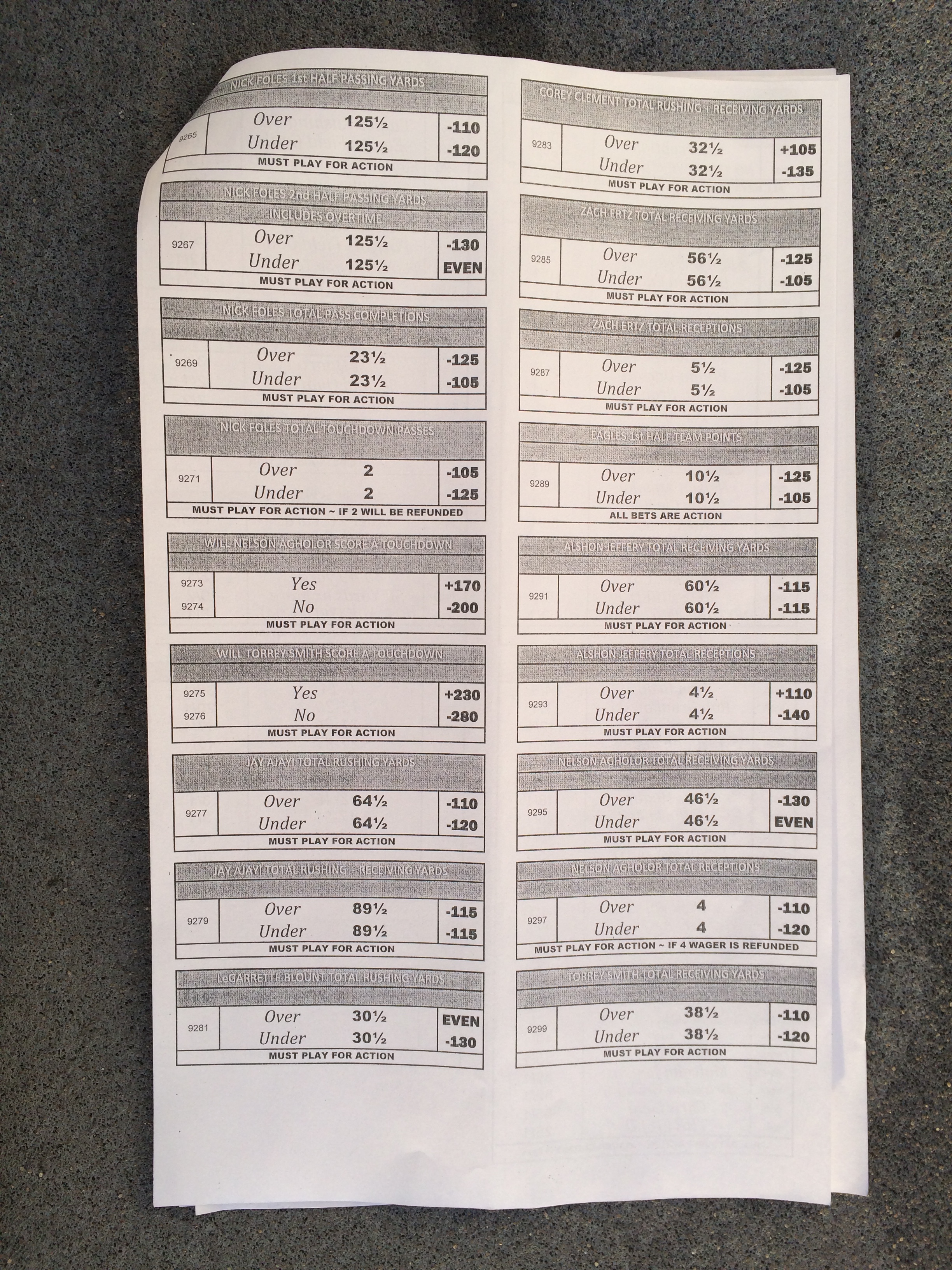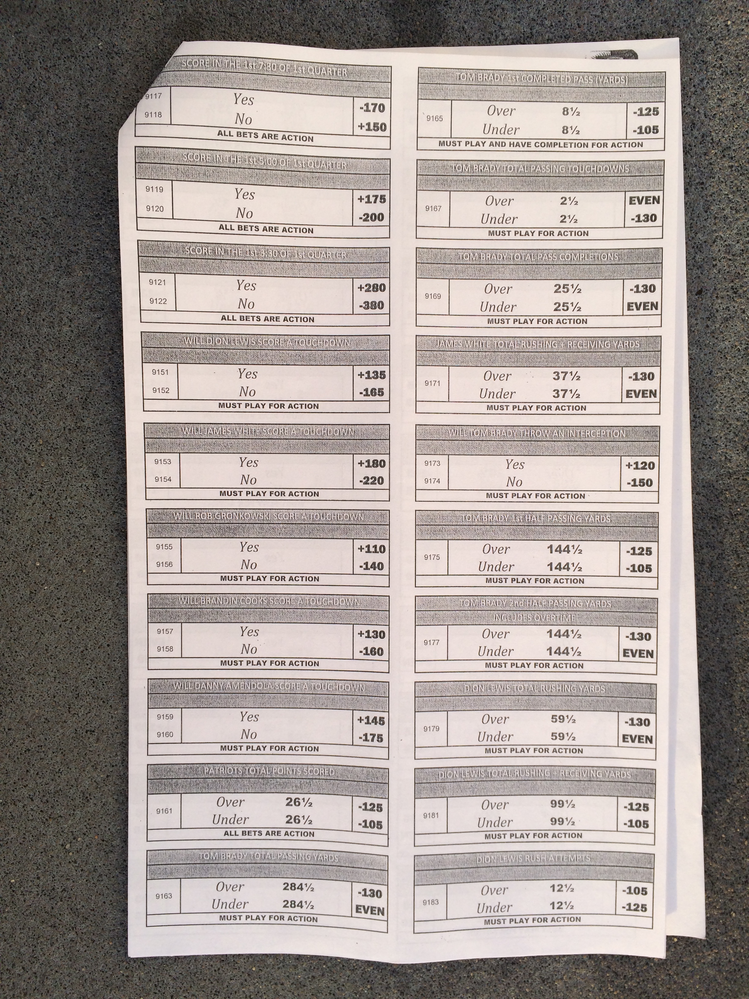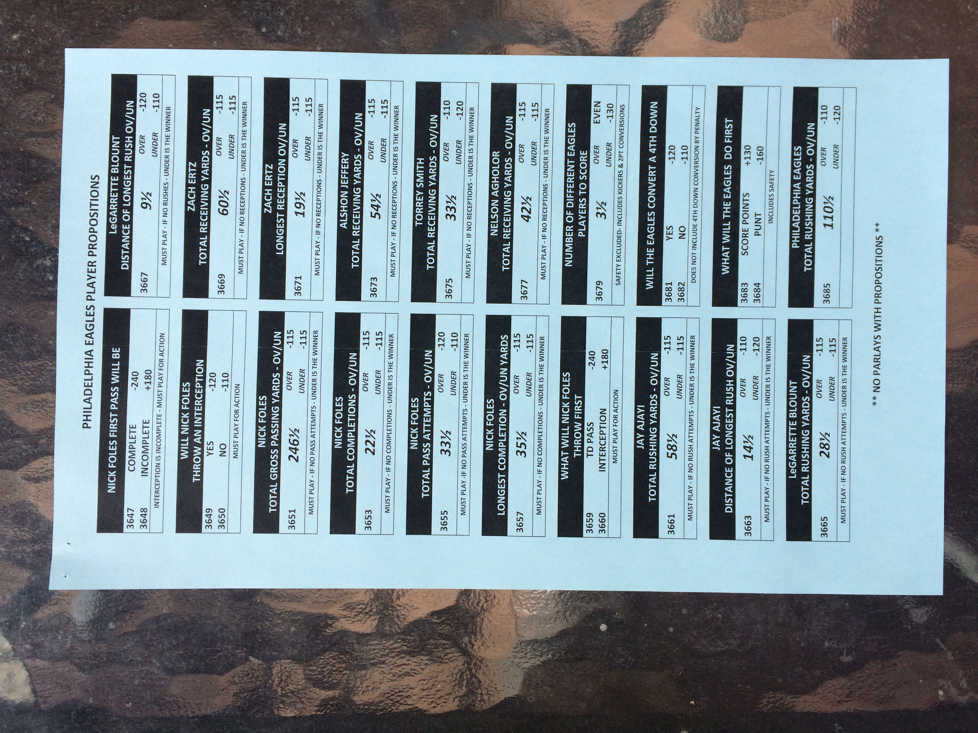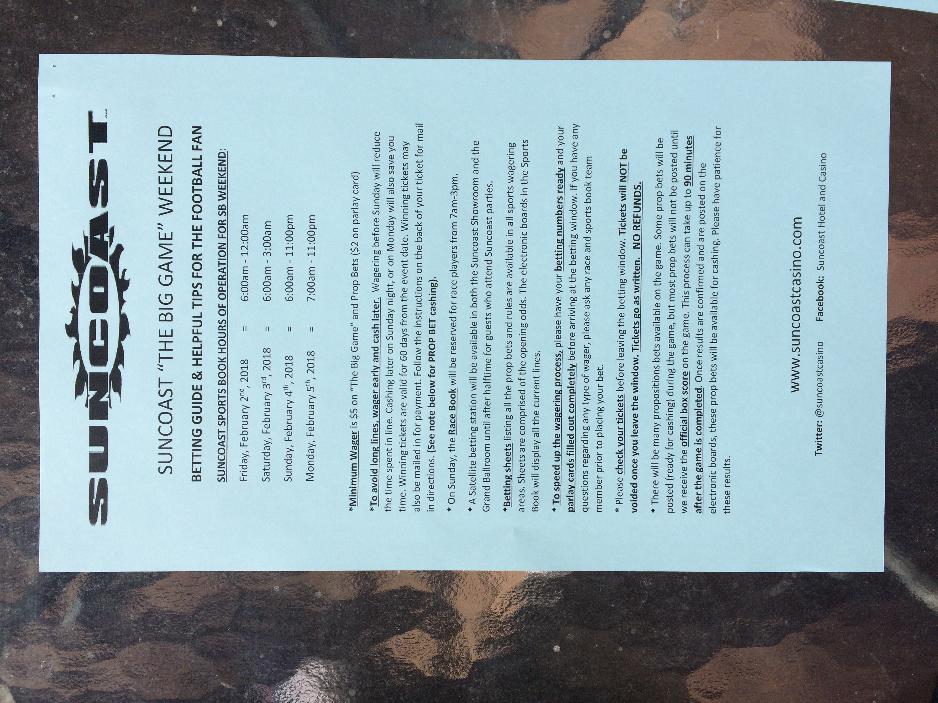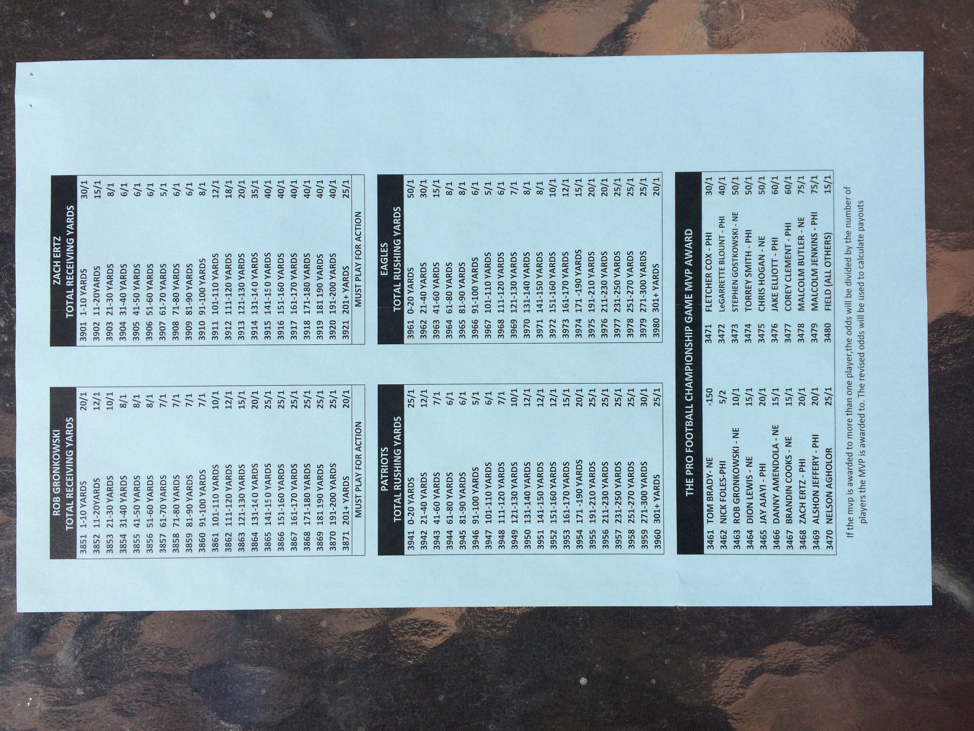 以下是拉斯维加斯几家体育博彩公司每页投注单的图片。这些表格收集于2018年1月27日,即比赛开始前八天。