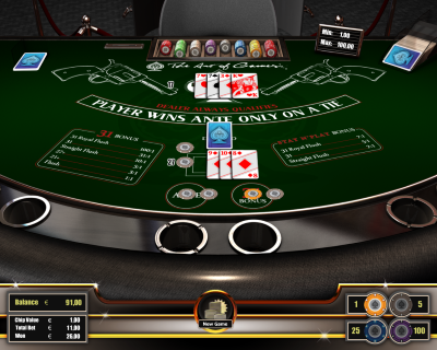- 保留最初的三张牌并进行与 Ante 赌注相等的额外下注。