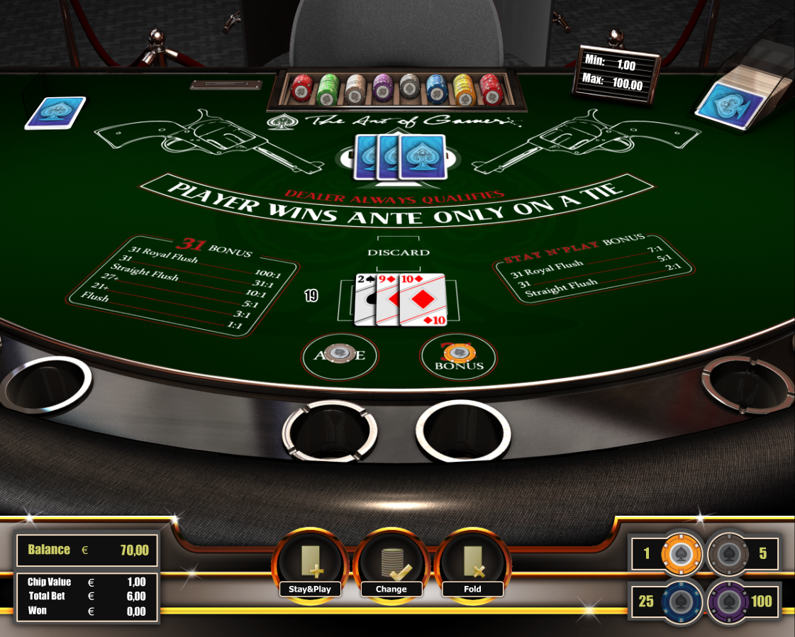 - 保留最初的三张牌并进行与 Ante 赌注相等的额外下注。