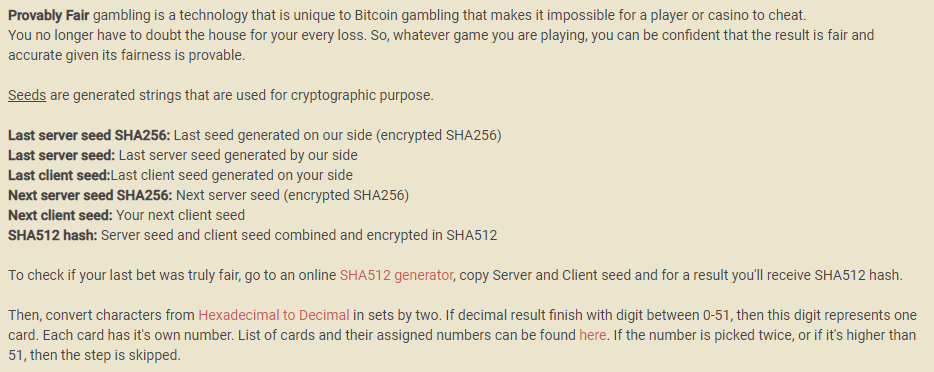 在上面的屏幕截图中,我回到“公平游戏”来观察赌场如何利用两颗种子来获得游戏中看到的实际牌。