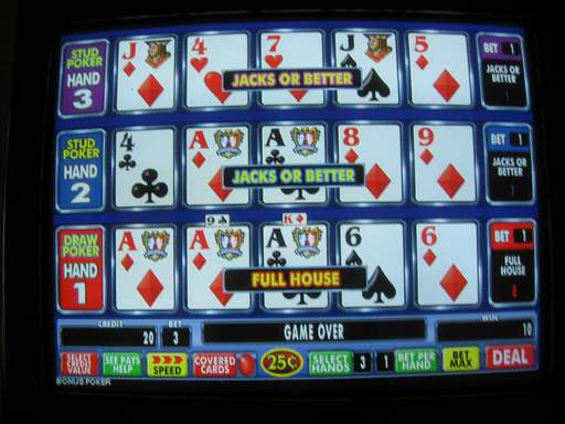 - 如果玩家选择玩一条线,则该线将有一次发牌机会和一次弃牌机会。其他线将不再有效。游戏玩法与标准视频扑克相同。