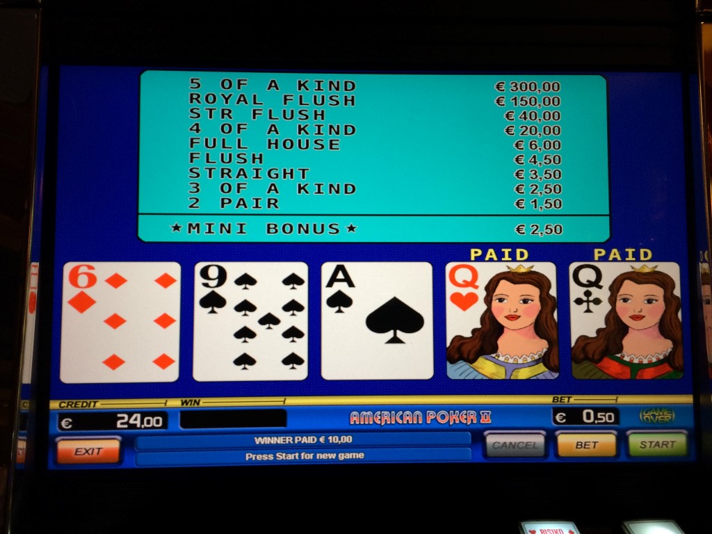 - 许多游戏都有“迷你奖金”。每拿到一对J、K或A,奖金金额就会增加,金额等于初始下注金额。如果玩家在发牌时拿到一对Q,即可赢得奖金。如果玩家在听牌时提升了牌力,则仅根据最终牌局的牌力获得赔付。根据柏林的一款游戏,奖金起始下注金额为5注,最高可达20注。