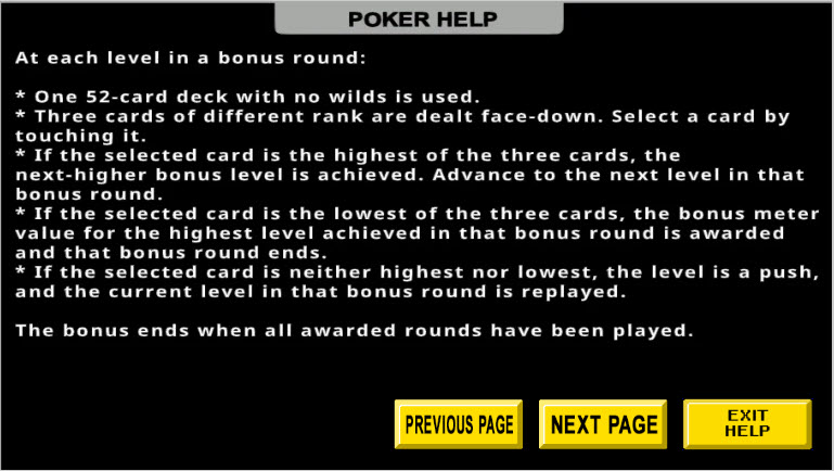 - 在奖励游戏的每个级别中,玩家将从三张不同点数的牌中进行选择。目标是选出点数最高的牌。