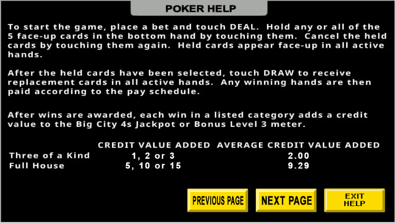 - VideoPoker.com — 玩 Big City 4s 游戏,乐趣无穷。需要金卡会员才能玩这款游戏。