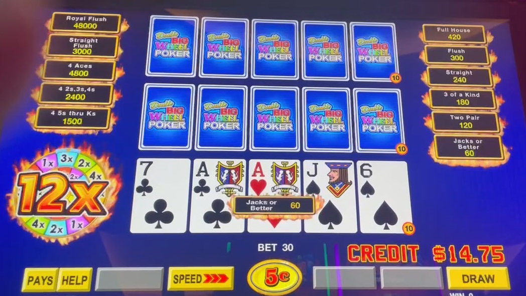 - 双大转盘扑克是基于 3 次播放、5 次播放和 10 次播放视频扑克的可选功能。