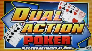 双动扑克 (Dual Action Poker) 的概念非常简单——玩家的最后一手牌会在两个不同的赔付表上计分,并根据两个赔付表进行赔付。其中一个赔付表是基于“2e Wild”的百搭牌游戏,另一个是基于“Jacks or Better”的百搭牌游戏。要使用此功能,玩家必须加倍其正常下注。