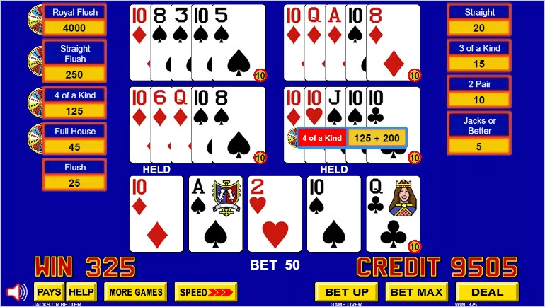 在这个例子中,我在五人游戏中玩 9-5 Jacks or Better。