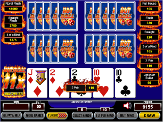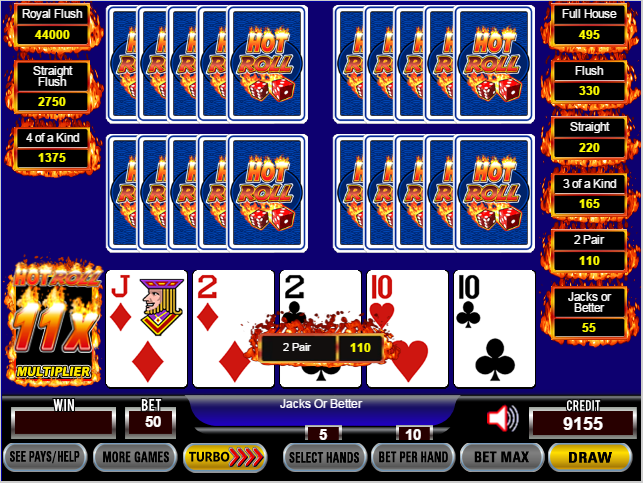 下表展示了Hot Roll Poker的游戏、赔率表和回报。这些是由游戏开发商IGT提供的。