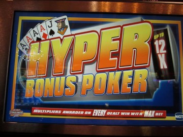 超级红利扑克(Hyper Bonus Poker)是我在2013年10月在拉斯维加斯阳光海岸赌场(Suncoast casino)发现的一种视频扑克游戏。这款游戏的特色在于,如果玩家在发牌时拿到任何一手好牌,就能获得一个倍数。为了获得这个功能,玩家必须加倍下注,而赢钱则基于总下注金额的一半。
