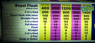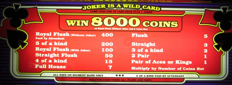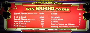 本页显示了 Joker Poker 的回报表,其中最低赔付牌是一对 K 或 A。