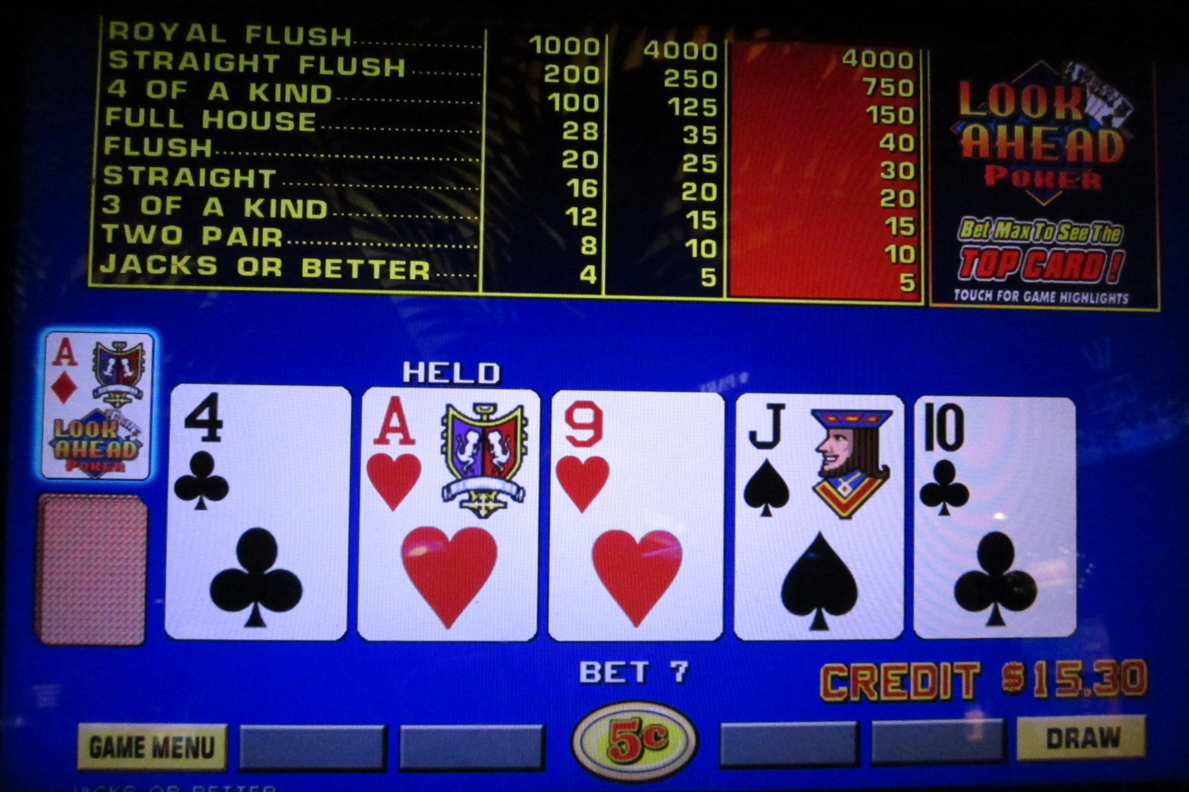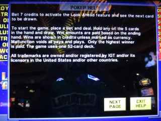 IGT 好心地向我提供了 Look Ahead Poker 的所有游戏和赔率表的列表。
