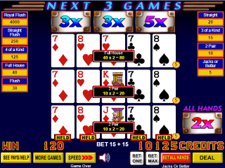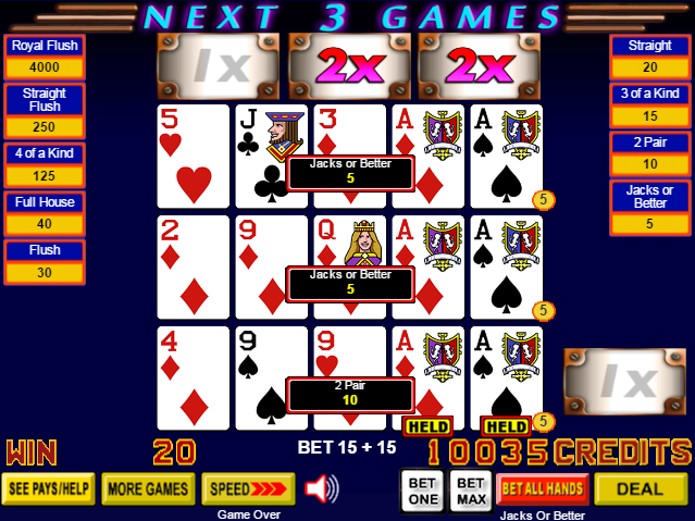 - 如果玩家在交易中至少获得最低限度的扑克牌(这取决于游戏),那么他将在接下来的三场游戏中赢得乘数。