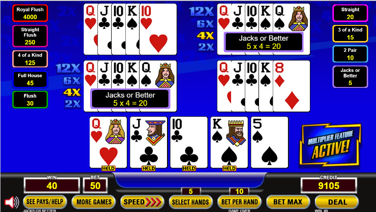 感谢VideoPoker.com允许我使用他们的游戏截图。玩 Multipliers Rising Poker 需要黄金级会员资格。